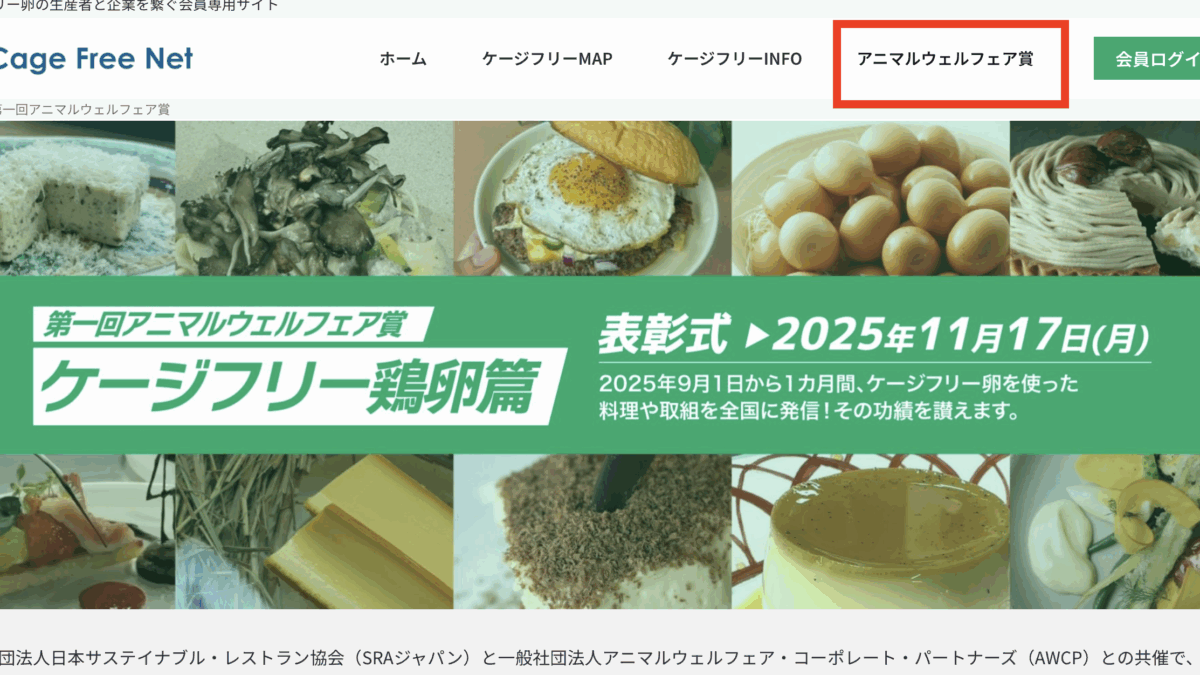 栄えある第一回は「ケージフリー鶏卵」篇とし、先進的にケージフリー鶏卵の調達を進めてくださった影響力のある飲食店の皆様に応募いただき、その普及に多大なご尽力をされた優勝店を表彰いたします。