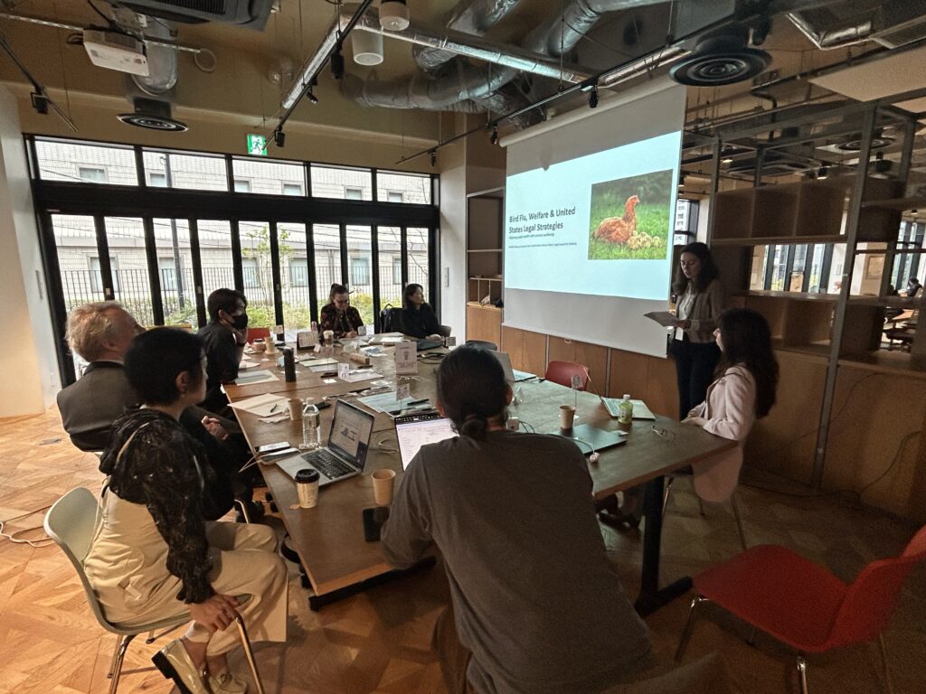 まず午前中は日本でアニマルウェルフェアやアニマルアドボカシの活動をしているNGOs, NPOsのみなさんと集まって、HPAIのウィルスについて、日本での現状を共有し、どのような活動がアニマルウェルフェアを向上するのに最適かということを議論し学びました。