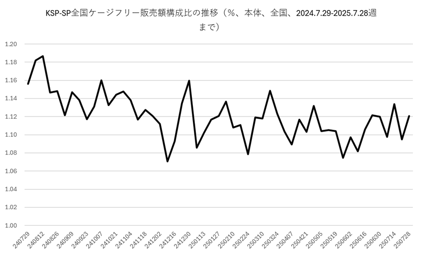 - KSP-SP(首都圏):ケージフリー販売金額は8.38倍、販売金額シェアは1.3%→2.5%へ上昇